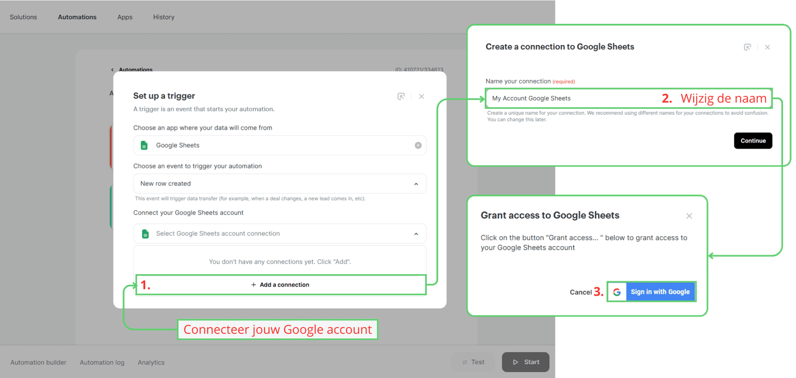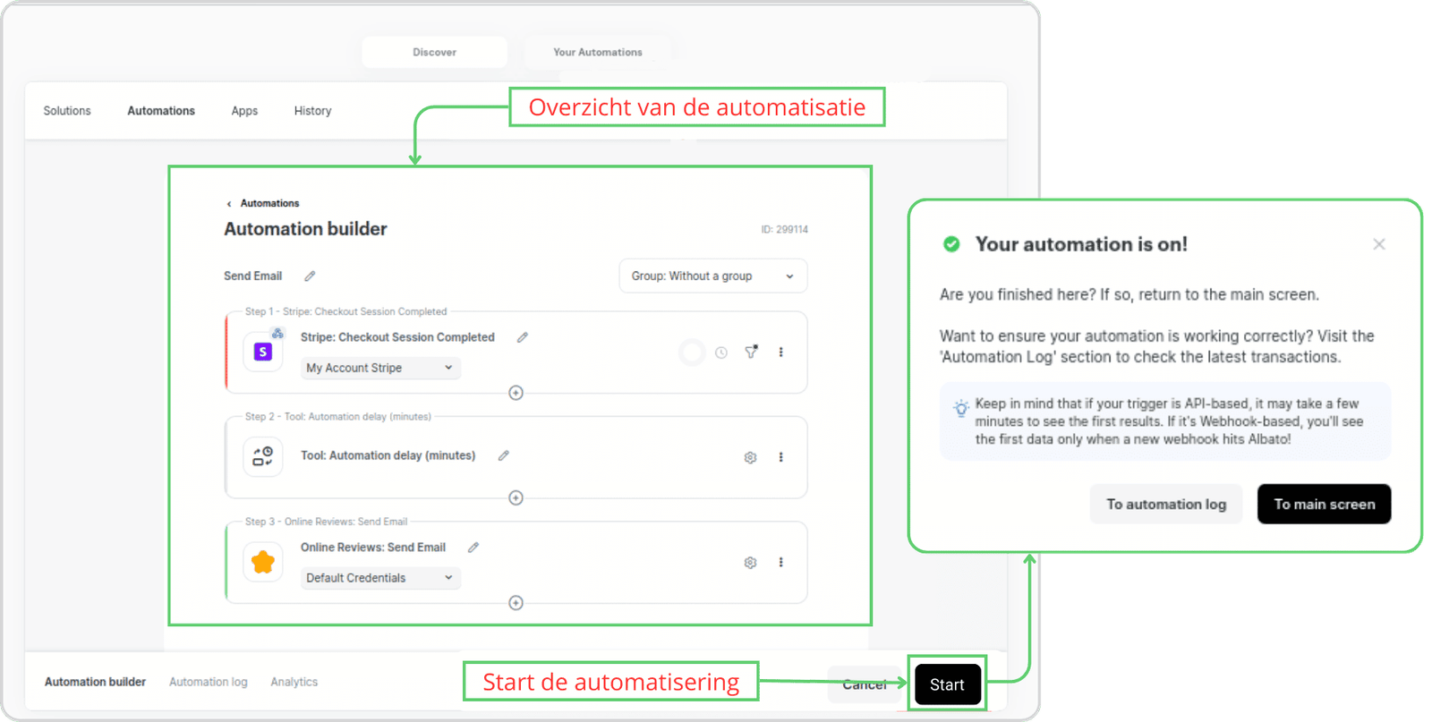De automatisering is nu ingesteld. Klik op “Start” om af te ronden.