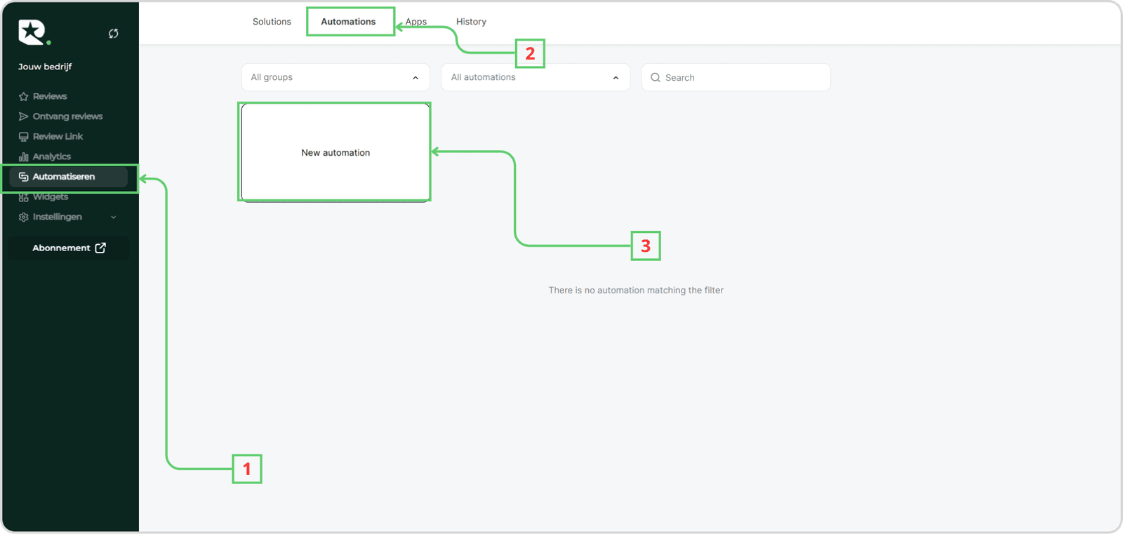 Klik op “Automatiseren” in het linkerpaneel: