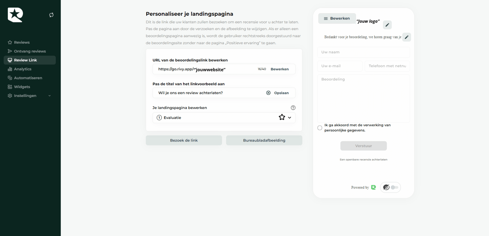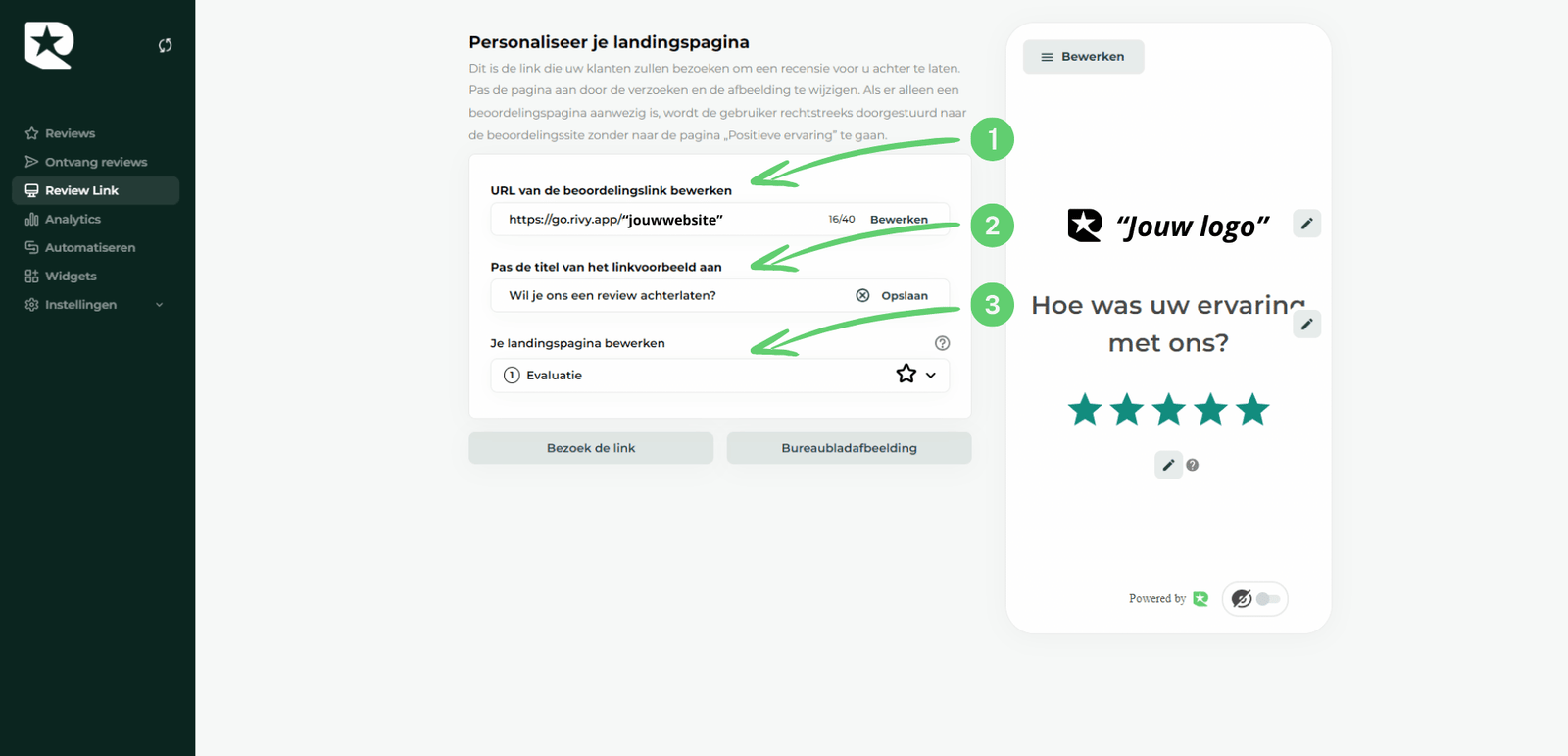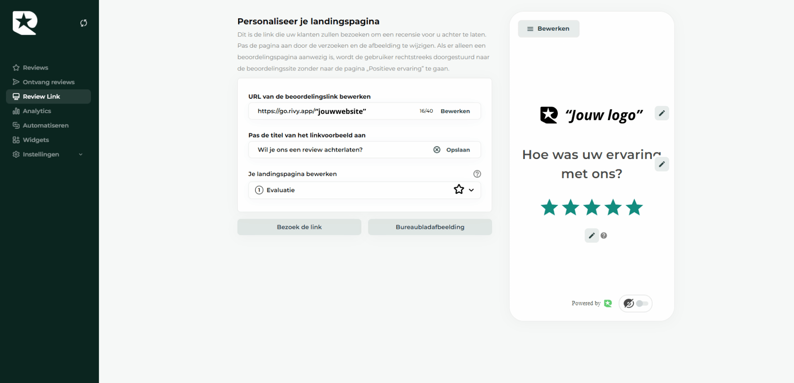 Pas je reviewlink aan zodat deze overeenkomt met de branding en tone of voice van je bedrijf.