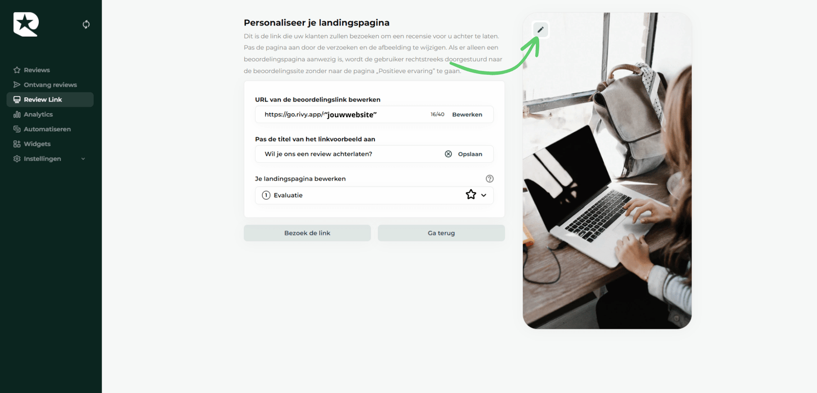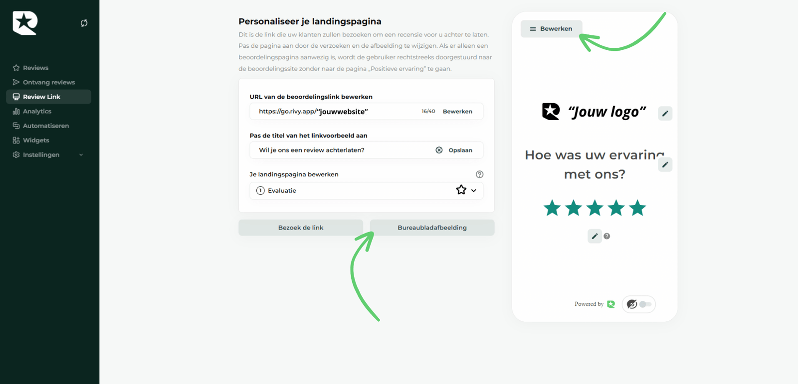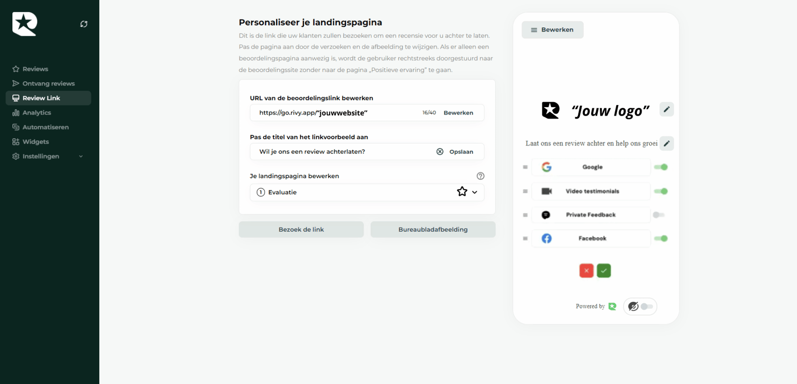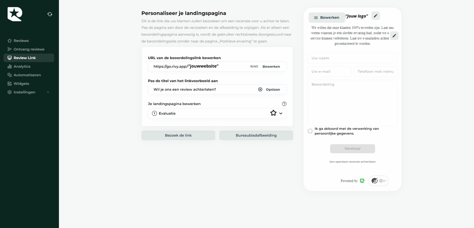 Pas je reviewlink aan zodat deze overeenkomt met de branding en tone of voice van je bedrijf.