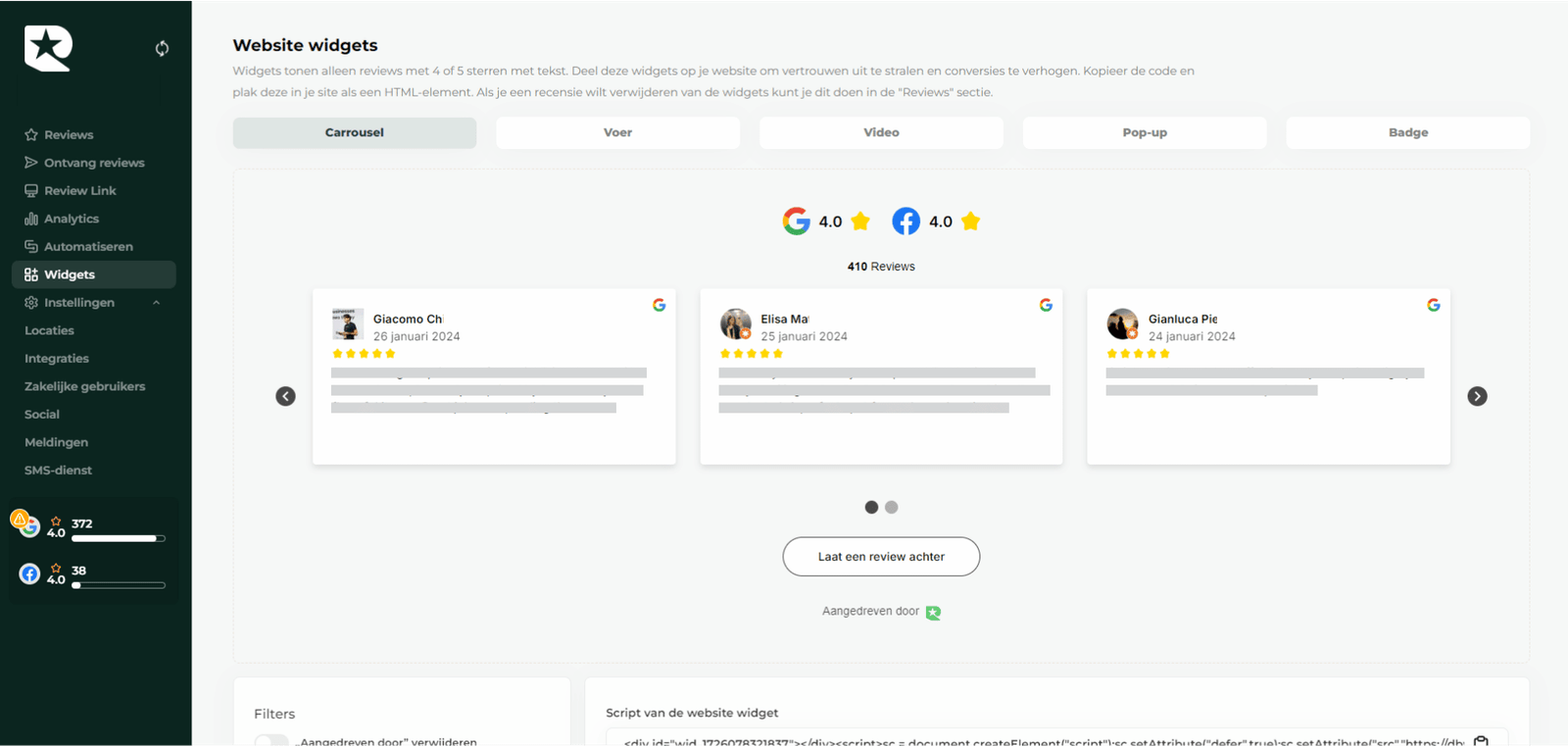 Wil je gewoon je sterrenreview laten zien voor je geïntegreerde platforms? Installeer de widget Badge en hij blijft plakken op alle pagina’s waarop je hem installeert.